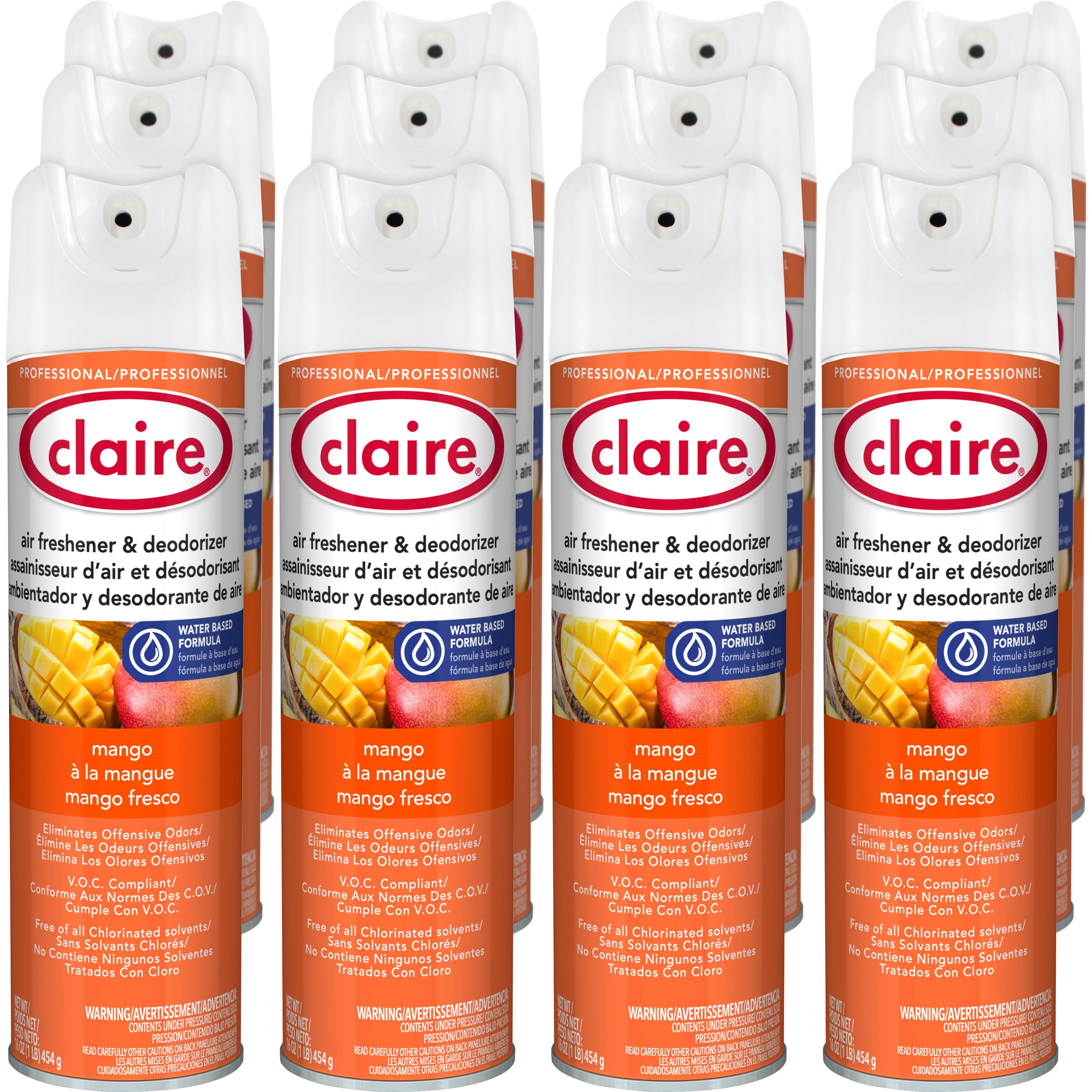 Claire Water-Based Air Freshener – Spray – 16 oz – Mango – 12 / Dozen – Residue-free, Non-staining, Ozone-safe, Odor Neutralizer, Recyclable